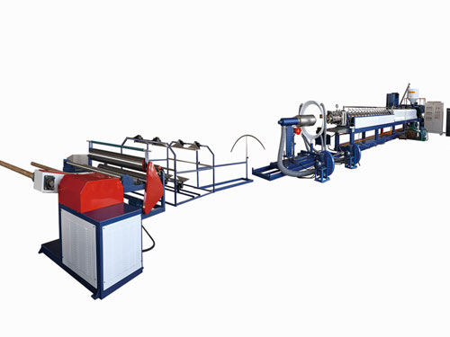 6.设备自动化程度高,有效提高生产效率,大幅降低人员劳动强度。设备包括颗粒自动给料,断料自动报警,液压自动换网,收卷自动计米、自动报警翻转。片材厚薄调节免扯断装置属于本公司特有。